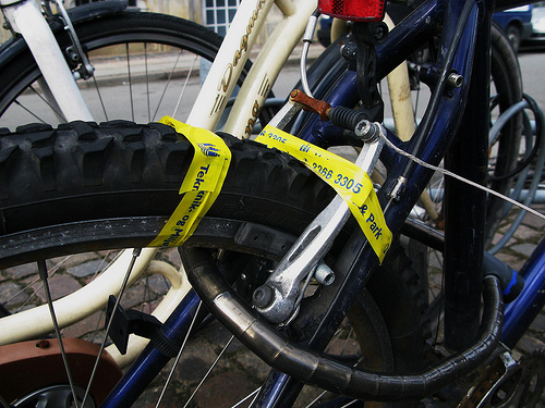 Anche a Copenhagen avviene di tanto in tanto la rimozione di biciclette. Come fanno ce lo spiega [Zakkaliciousness] con questa foto che ha come titolo Abandoned. Le bici vengono “nastrate” e se dopo un certo tempo il nastro non è stato strappato o tolto, la bici viene rimossa per essere poi successivamente messa all’asta. Civile vero? Mica come è accaduto mesi fa a Bologna!
